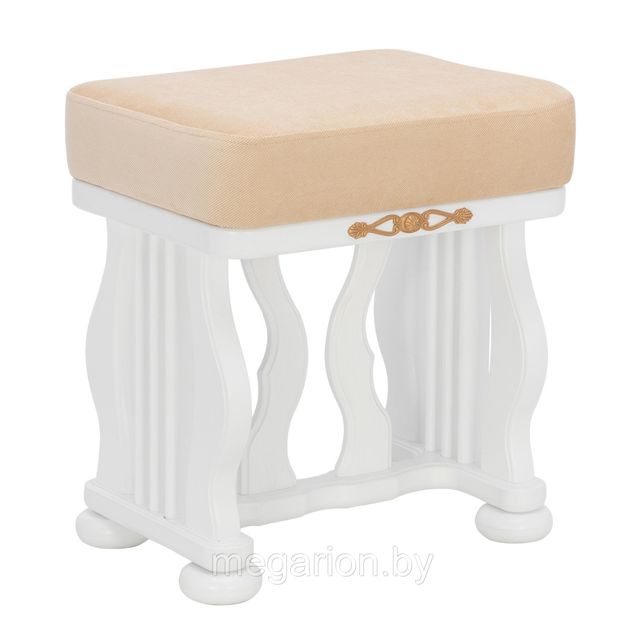 Банкетка с мягким сидением и изогнутыми опорами необычной формы выполнена из массива дерева. Сиденье обтянуто мебельной тканью высокого качества. Надежные опоры банкетки придают ей устойчивость. Банкетка станет отличным дополнением к туалетному столику «Джульетта».