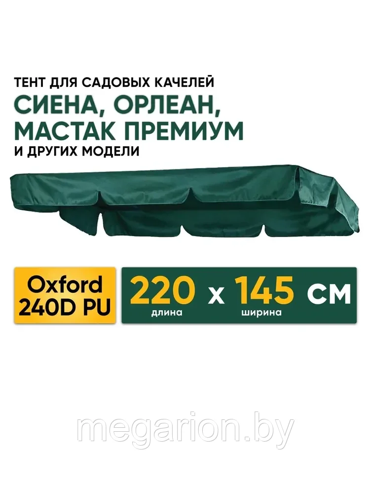 Водонепроницаемая крыша 220х145см для садовых качелей Сиенна/ Орлеан/ Мастак Премиум, ткань Оксфорд 240D зеленый